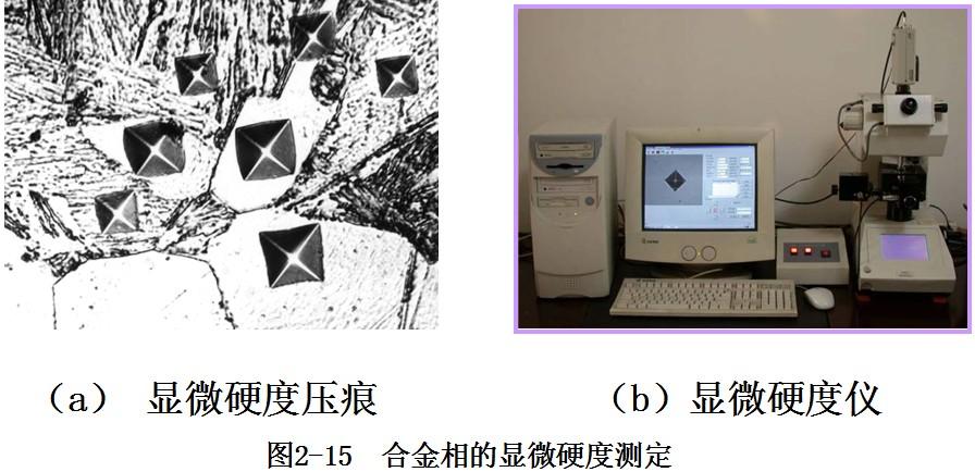 維氏顯微硬度, 簡(jiǎn)稱顯微硬度, 是測(cè)量陶瓷和金屬合金中某一相微區(qū)的硬度, 如圖2-15所示。
