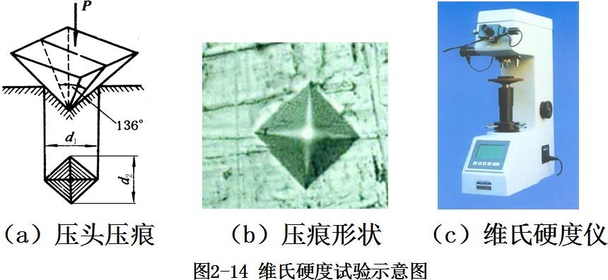 維氏硬度是用兩對(duì)對(duì)面體的夾角均為136°的金剛石四面體菱形壓頭來測(cè)定的。它是通過測(cè)量壓頭壓入部分的對(duì)角線長(zhǎng)度(圖2-14)來計(jì)算的。