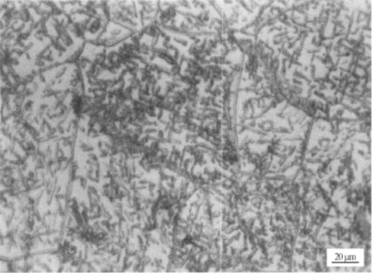 3-49 Ti1300合金β相區(qū)固溶+時(shí)效組織:針狀次生α(亮條)在β基體上析出