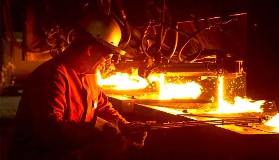 ★在爐前:爐蓋剛提升旋轉,加料行車工就啟動小車緊跟進入爐子中心卸料;爐蓋一放下,通電的弧光就出現(xiàn),一個爐前工已啟動鏟車補筑爐門;鋼熔清,一個爐前工已穿戴整齊安全防護用品到爐子前去測溫和取樣:測溫爐前工和爐長默契用手勢交流,統(tǒng)一行動;爐溫和試樣一合格,三個爐前工各自同步走出操作室到爐前干自己應該做的事。