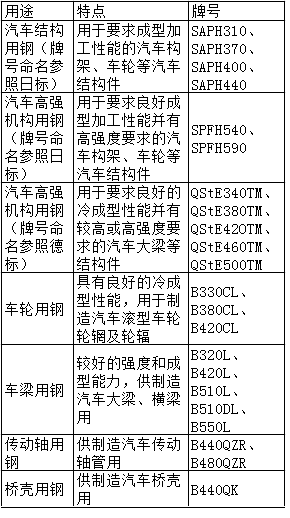 汽車結(jié)構(gòu)鋼用于汽車大梁、橫梁、車輪、車底盤零件等,具有較高的強(qiáng)度、良好的成型能力和焊接能力、較高的尺寸精度和表面質(zhì)量,在各汽車及零部件廠家得到廣泛應(yīng)用,生產(chǎn)各類汽車結(jié)構(gòu)部件。