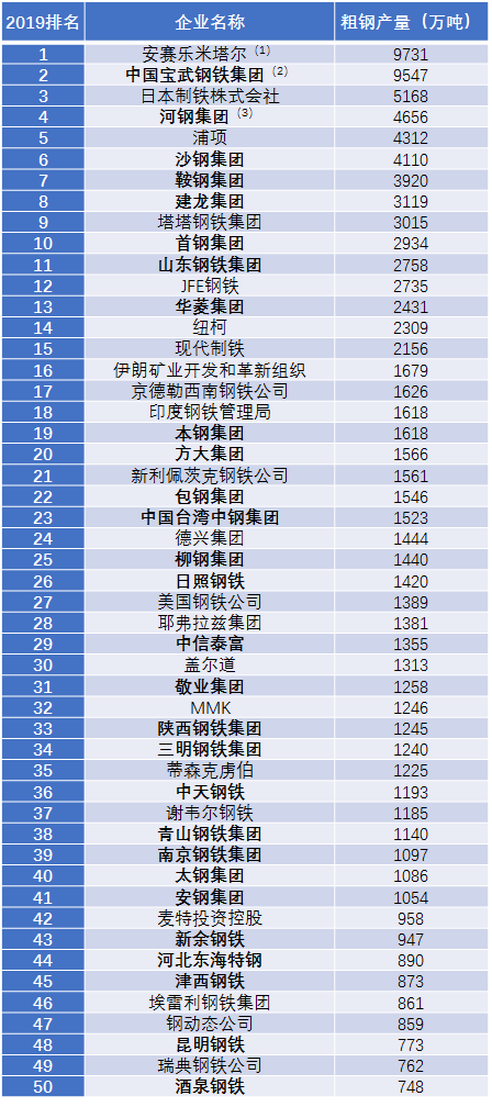 2019年全球50大鋼鐵企業(yè)排行榜發(fā)布