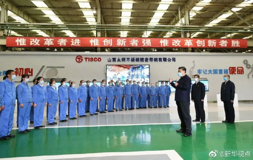 據(jù)央視報(bào)道,5月12日上午,正在山西考察的習(xí)近平總書記來到太鋼不銹鋼精密帶鋼有限公司,走進(jìn)生產(chǎn)車間,了解生產(chǎn)運(yùn)行情況,同工人們親切交談。