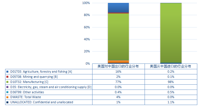 圖17 美國(guó)對(duì)中國(guó)的出口集中在農(nóng)業(yè)和制造業(yè)