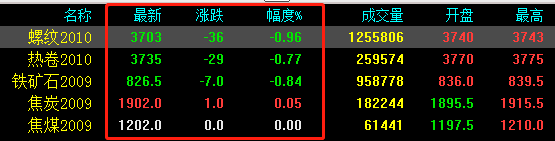 期貨早盤反彈,午后快速回落。期螺下跌26收報3703,期卷下跌29收報3735,鐵礦石下跌7收報826.5,焦炭上漲1收報1905,焦煤持平。