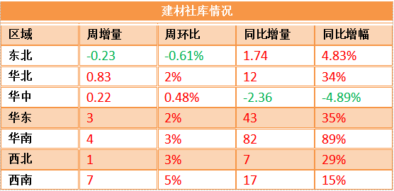 本周建材多數(shù)地區(qū)社會庫存呈小幅上漲,其中西南周庫存環(huán)比上升5%,華南地區(qū)周庫存環(huán)比上升3%,且較去年同期仍高出近9成規(guī)模,庫存壓力仍顯。