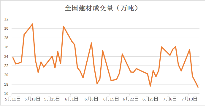 本周建材成交量連續(xù)三日低于20萬噸。在期貨高位回落的帶動下,現(xiàn)貨市場報價松動,部分商家降價出貨,但跌幅有限,市場向好預期仍在。