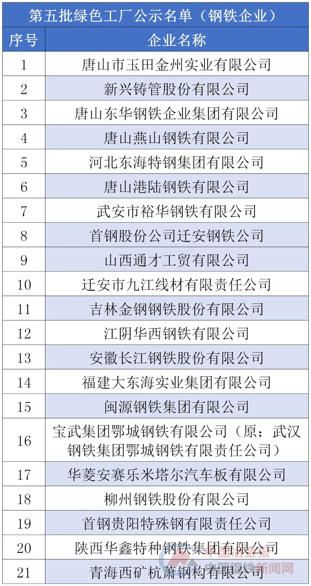 21家鋼企入圍!工信部第五批綠色工廠名單公示(附前4批名單)