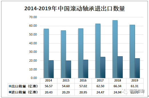 現(xiàn)代機(jī)器、儀器等設(shè)備正向高速、重載、精密、輕巧等方面發(fā)展,這對滾動軸承提出許多新的要求,如在減小尺寸的同時要求軸承保持甚至提高額定負(fù)荷,采用新技術(shù)改進(jìn)工藝,提高制造精度,降低成本。2019年中國滾動軸承出口數(shù)量為61.31億套,同比下降7.6%;中國滾動軸承進(jìn)口數(shù)量為22.7億套,同比下降9%。