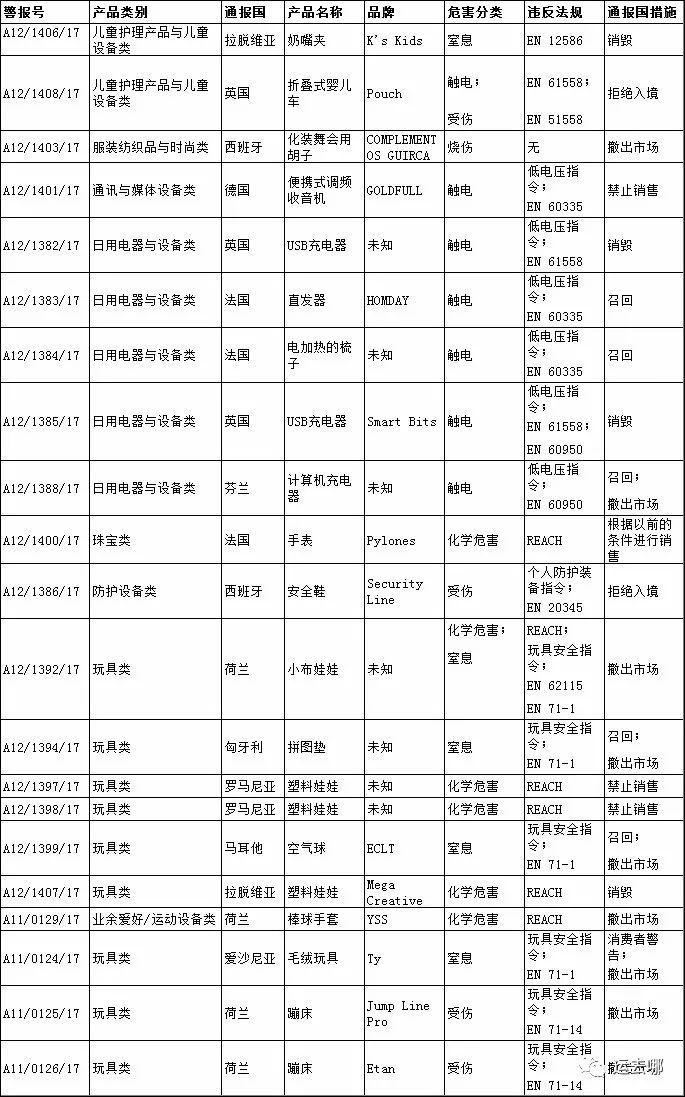同時(shí),歐盟非食品快速預(yù)警系統(tǒng)RAPEX發(fā)布2017年第41周通報(bào)。通報(bào)產(chǎn)品總數(shù)為35例,中國(guó)大陸產(chǎn)品被通報(bào)共計(jì)21例,占全部通報(bào)60.0%