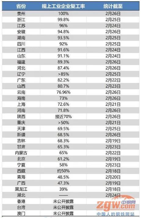 全國(guó)規(guī)模以上工業(yè)企業(yè)復(fù)工率快速增加。但值得注意的是,復(fù)工不等于進(jìn)入常規(guī)化生產(chǎn)階段,生產(chǎn)經(jīng)營(yíng)的恢復(fù)仍需時(shí)間。