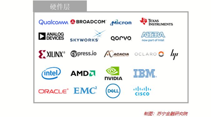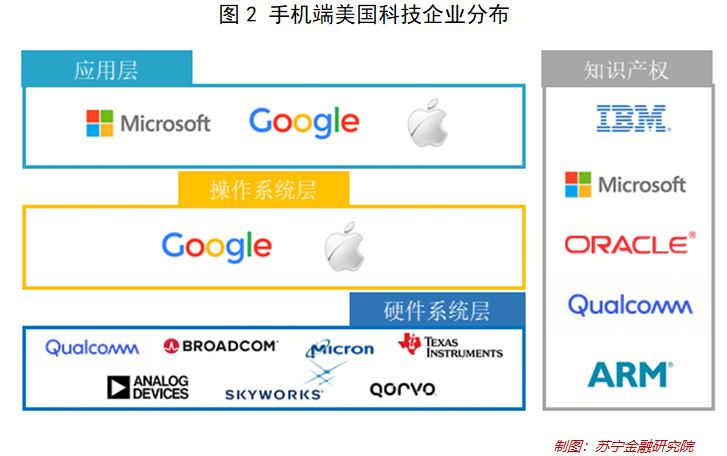 應(yīng)用層是指面向用戶的應(yīng)用服務(wù),比如國內(nèi)的微信、支付寶、蘇寧易購等,又比如國外的谷歌、微軟、Twitter、Facebook、Instagram等。由于在應(yīng)用層的美國企業(yè)對于國內(nèi)無論是市場占有率還是影響力都較為有限,而且又非不可替代,這里就不一一列舉了。