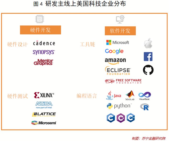 下面,我們沿著研發(fā)主線,進(jìn)一步梳理還有哪些美國科技企業(yè),以及他們在科技版圖上的分布情況。