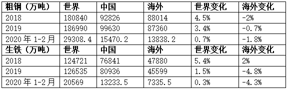 2019年海外粗鋼產(chǎn)量僅減少0.7%,但生鐵產(chǎn)量減少了4.8%,約合2281萬噸,按1:1.6計算,相當(dāng)于減少了3650萬噸鐵礦石需求。今年前2個月,海外粗鋼產(chǎn)量減少了1.8%,生鐵產(chǎn)量減少了4.3%,趨勢非常明顯,預(yù)計將繼續(xù)持續(xù)。歷史不會簡單的重復(fù),2020年的中國鋼鐵還會再次“拯救”全球鋼鐵嗎?