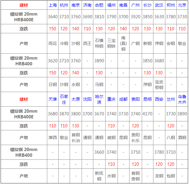 2020年7月22日全國鋼材價格漲跌圖!/ 預(yù)測:明日鋼價要……