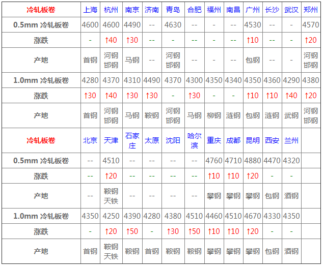 今日冷軋板卷價格上漲為主市場上行為主,鞍鋼、首鋼、本鋼等漲10-20元,柳鋼漲20-30元,部分商家報價偏高,此報價并不為了成交出貨,主要考慮到后期價格繼續(xù)上漲,因此并不愿意低價出貨。但是部分貿(mào)易商價格又略低,高低價差達(dá)到30-40元/噸,尤其是市場較為緊張的資源抬高較多。總體來看,預(yù)計市場短期冷軋卷板價格高位運行。