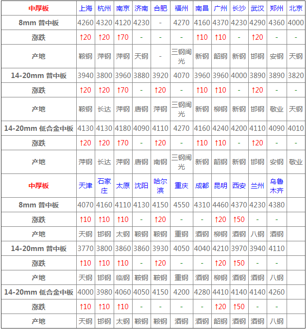 黑色系創(chuàng)新高,盤中現(xiàn)貨市場普漲,交投活躍有增,不過高價位接受度不高,雖然市場普遍認(rèn)為下游需求或?qū)㈦S著陸續(xù)出梅而回升,提振漲價人氣,但南方降雨依舊偏多,考慮鋼坯上調(diào)30,市場資源有限,預(yù)計明日中板市場價格穩(wěn)中偏強調(diào)整。