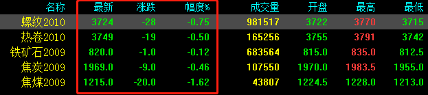 期貨午后沖高回落,期螺跌28收報3724,期卷跌19收報3749,鐵礦石跌1收報820,焦炭跌9收報1969,焦煤跌20收報1215。