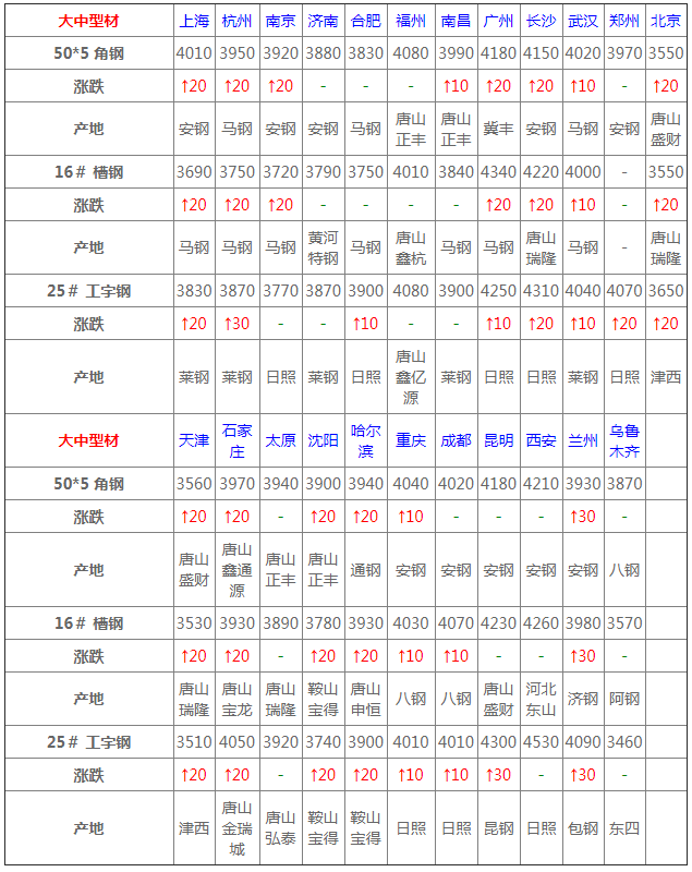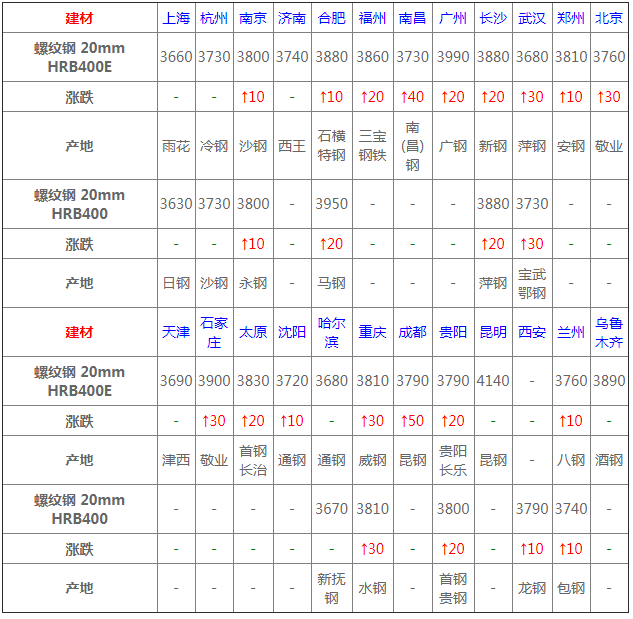 2020年8月4日全國鋼材價格! 又漲60!36鋼廠最新調(diào)價!