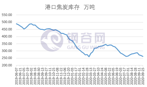 本周國(guó)內(nèi)焦炭第三輪提漲落地。截止本周五山西地區(qū)冶金焦?jié)q50,準(zhǔn)一級(jí)現(xiàn)報(bào)1800-1850元/噸,二級(jí)1700-1750元/噸;烏海地區(qū)主流焦企二級(jí)冶金焦?jié)q50,現(xiàn)報(bào)1650元/噸;河北地區(qū)冶金焦?jié)q50,準(zhǔn)一級(jí)現(xiàn)報(bào)1890元/噸;陜西地區(qū)冶金焦?jié)q50,一級(jí)現(xiàn)報(bào)1930元/噸。本周焦炭市場(chǎng)第三輪提漲基本落地,經(jīng)三輪上漲后,焦企利潤(rùn)高位,積極生產(chǎn),下游訂單充足,廠內(nèi)多數(shù)無(wú)庫(kù)存。下游鋼廠由于鋼材價(jià)格弱勢(shì)下跌,高爐開工率高位回調(diào),但仍然處高位,對(duì)焦炭需求仍較好,多數(shù)鋼企節(jié)前適量補(bǔ)庫(kù),支撐焦價(jià)高位運(yùn)行。港口庫(kù)存262萬(wàn)噸,較上周下降6.5萬(wàn)噸,考慮到目前焦炭市場(chǎng)供應(yīng)依舊偏緊,節(jié)前焦炭市場(chǎng)或持穩(wěn)運(yùn)行。