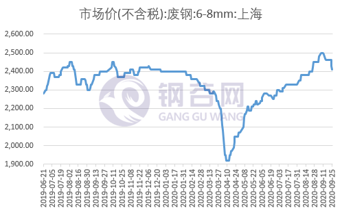本周國(guó)內(nèi)廢鋼市場(chǎng)繼續(xù)下跌下行。截至本周五上海廢鋼2410元/噸,較上周降50元/噸;張家港廢鋼2370元/噸,較上周降70元/噸;唐山廢鋼2570元/噸,較上周降20元/噸,西安廢鋼2310元/噸,較上周降80元/噸。本周黑色系商品期貨、鋼坯和成品材等集體弱勢(shì)下跌,受此影響廢鋼市場(chǎng)恐慌情緒加劇,貿(mào)易商出貨積極性增加,鋼廠利潤(rùn)低位,對(duì)廢鋼打壓意愿強(qiáng)烈,順勢(shì)下調(diào)廢鋼采購(gòu)價(jià),沙鋼24、25日連續(xù)兩日對(duì)廢鋼價(jià)格下調(diào)50元/噸,周邊鋼廠紛紛跟跌,開啟又一波廢鋼跌價(jià)潮,但考慮到目前廢鋼整體資源量仍處偏緊狀態(tài),鋼廠對(duì)廢鋼需求維持高位,價(jià)格跌后恐慌情緒釋放,節(jié)前廢鋼市場(chǎng)或以弱勢(shì)盤整運(yùn)行為主。
