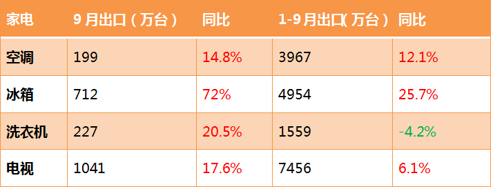 9月我國家電出口同比去年增速明顯,尤其是冰箱出口增幅較去年同期增長72%,且前三季度累計同比增長25.7%,外需的回升有助于國內(nèi)制造業(yè)的持續(xù)恢復(fù),對與之相關(guān)的板材品類帶來支撐。