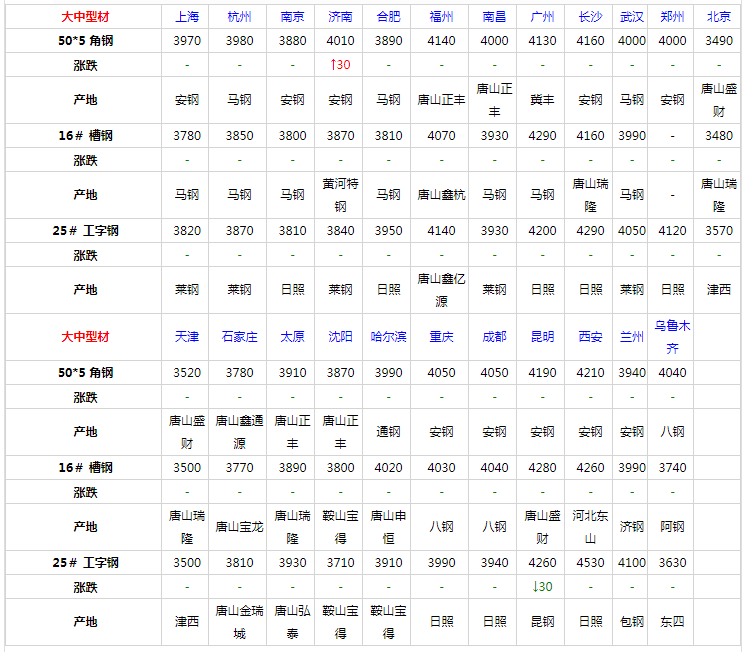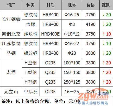 據(jù)數(shù)據(jù)監(jiān)測,今日共23家鋼廠調價,其中漲幅最高為宏潤H型鋼,調價幅度20元/噸,跌最大為馬鋼建材,調價幅度20元/噸,具體調價明細如下:
