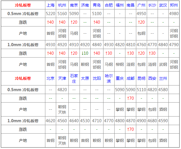 今日市場繼續(xù)上移,需求表現(xiàn)并不弱的情形下,預(yù)計短期冷軋板卷價格仍將維持高位震蕩。