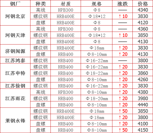 濟(jì)鋼閩源建材上調(diào)20元/噸