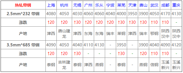 熱卷24個市場中16個市場上漲10-40,4.75熱軋板卷平均價格3970元/噸,較上個交易日上調(diào)13元/噸;
