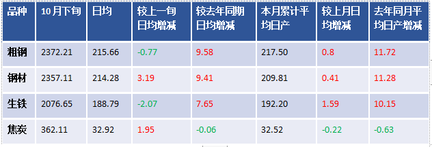 1、10月下旬重點鋼企粗鋼日均產(chǎn)量215.66萬噸