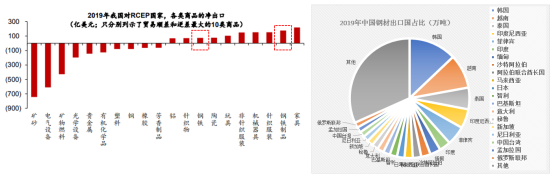 從對鋼鐵行業(yè)影響來看,鋼鐵和鋼鐵制品屬于我國對RCEP國家凈出口前10類商品。我國鋼材直接出口國家主要集中在東南亞地區(qū),包括韓國、越南、泰國、菲律賓等國均是RCEP的重要國家,有利于鋼材下游制造業(yè)出口的推進(jìn),和制造業(yè)零部件進(jìn)口成本的降低。促進(jìn)制造業(yè)產(chǎn)業(yè)鏈的優(yōu)化,推進(jìn)鋼鐵行業(yè)提質(zhì)增效,以及促進(jìn)鋼材的直接和間接出口,外需拉動將進(jìn)一步增強(qiáng)。