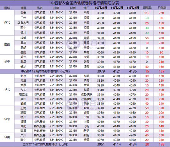 西北市場(chǎng)熱軋板卷情況,主導(dǎo)鋼廠(chǎng)漲價(jià)意愿強(qiáng)烈,隨著資源成本的快速拉升,市場(chǎng)商家基于庫(kù)存有限的情況下,積極配合跟漲,市場(chǎng)受季節(jié)性需求淡季影響,市場(chǎng)整體需求表現(xiàn)較差,商家多按需出貨,一單一議銷(xiāo)售為主。