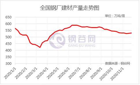 產(chǎn)量繼續(xù)增加,本周總量由上周的增加1.94萬(wàn)噸調(diào)整為本周增加3.31萬(wàn)噸。除華中、華東、東北產(chǎn)量持平外,其他區(qū)域產(chǎn)量繼續(xù)增加。其中西北轉(zhuǎn)降為增,西南繼續(xù)增加,華北轉(zhuǎn)降為增,華南繼續(xù)增加。近期煉鋼利潤(rùn)大幅改善,鐵水產(chǎn)量維持相對(duì)高位,長(zhǎng)流程產(chǎn)量小幅回升。后期來(lái)看,個(gè)別區(qū)域鋼廠(chǎng)面臨供暖季限產(chǎn),或?qū)⑦M(jìn)入冬季檢修階段,預(yù)計(jì)長(zhǎng)流程產(chǎn)量恢復(fù)至前期高位水平可能不大;而短流程電爐廠(chǎng)原料庫(kù)存也有所改善,電爐產(chǎn)能利用率繼續(xù)回升,預(yù)計(jì)短流程短產(chǎn)量仍有小幅提升空間。而短期市場(chǎng)資源規(guī)格方面,部分地區(qū)高線(xiàn)及盤(pán)螺資源緊俏,鋼廠(chǎng)調(diào)整生產(chǎn)策略,減少了中間規(guī)格的產(chǎn)量,增加了小規(guī)格和盤(pán)螺、線(xiàn)材的產(chǎn)量,短期市場(chǎng)處于補(bǔ)充短缺資源,修復(fù)規(guī)格供需缺口的格局。
