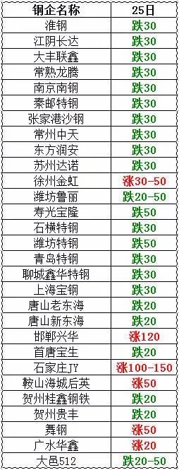 1月25日東方特鋼廢鋼下調(diào)30:爐料一3230,爐料二3197,爐料三3164,重廢一3131,重廢二3053,重廢三2998,剪廢一2298,破碎料一3150,破碎料二2864,含稅,結(jié)算稅點(diǎn)9.2% 。