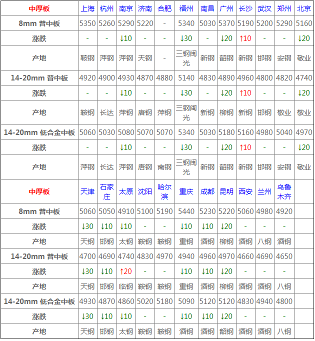 昨日中板市場(chǎng)價(jià)格弱勢(shì)調(diào)整,期螺震蕩運(yùn)行,商家心態(tài)欠佳,實(shí)際成交表現(xiàn)一般,下游觀望心態(tài)濃,預(yù)計(jì)今價(jià)穩(wěn)中整理。