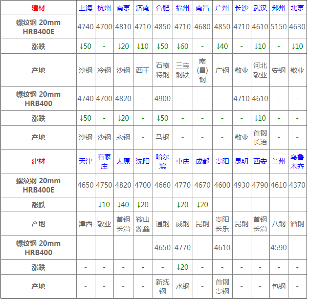 2021年3月24日全國(guó)鋼材實(shí)時(shí)價(jià)格!