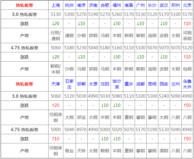 今全國(guó)熱軋市場(chǎng)穩(wěn)中震蕩,幅度10-50元,鋼坯堅(jiān)挺,期卷上行,終端入市謹(jǐn)慎,現(xiàn)貨觀望為主,部分市場(chǎng)試探性上行調(diào)整,交投欠佳;