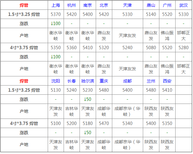 今日開(kāi)市,24日唐山市場(chǎng)焊管價(jià)格窄幅上調(diào),成交尚可。據(jù)富寶鋼鐵網(wǎng)管材研究中心市場(chǎng)監(jiān)測(cè)顯示:成都市場(chǎng)1.5*3.25成都京華焊管價(jià)格為5740元/噸,4*3.75成都京華焊管價(jià)格為5730元/噸,6*4成都京華焊管價(jià)格為5780元/噸。