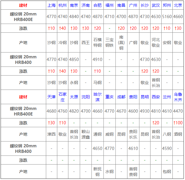 3月25日建材價(jià)格:偏強(qiáng)震蕩;