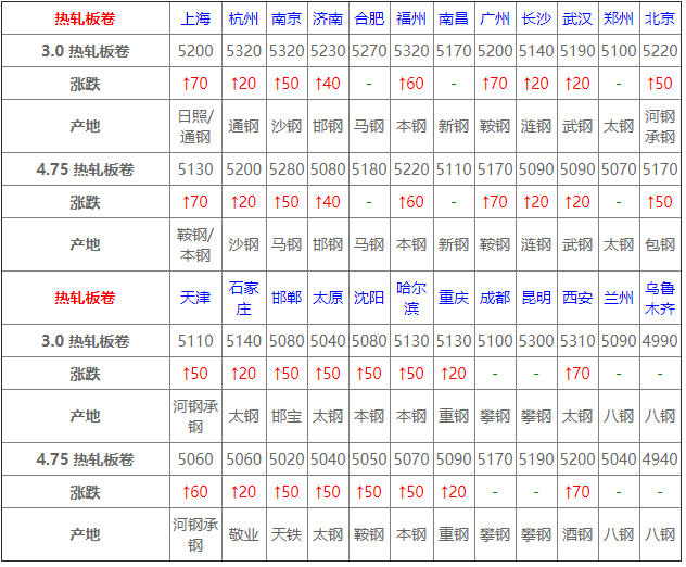 3月25日熱軋板卷價(jià)格:高位調(diào)整;