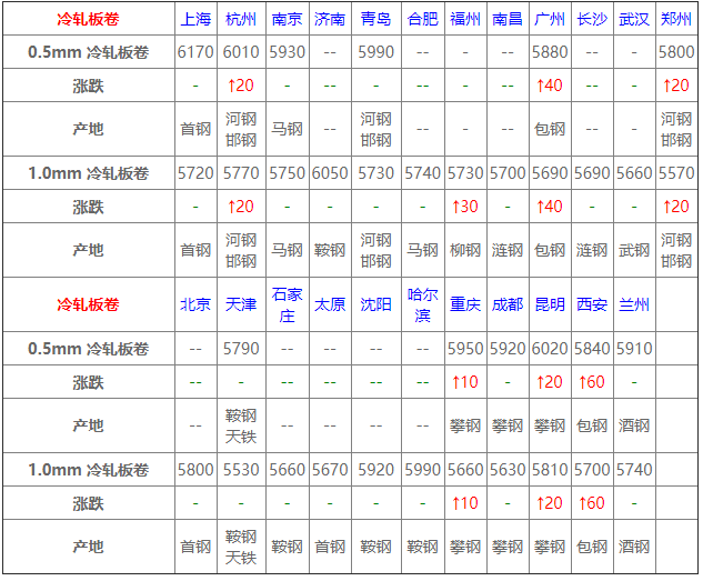 3月25日冷軋板卷價(jià)格:高位運(yùn)行;