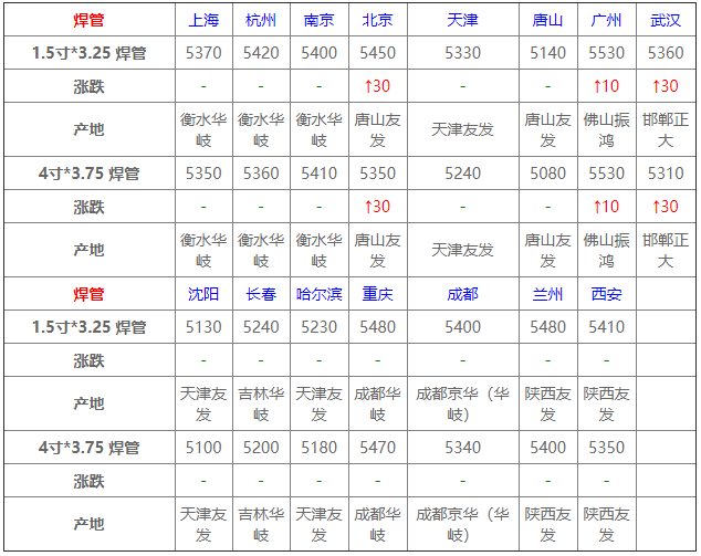 今日開(kāi)市,25日唐山市場(chǎng)焊管價(jià)格窄幅上調(diào),成交尚可。據(jù)富寶鋼鐵網(wǎng)管材研究中心市場(chǎng)監(jiān)測(cè)顯示:成都市場(chǎng)1.5*3.25成都京華焊管價(jià)格為5740元/噸,4*3.75成都京華焊管價(jià)格為5730元/噸,6*4成都京華焊管價(jià)格為5780元/噸。