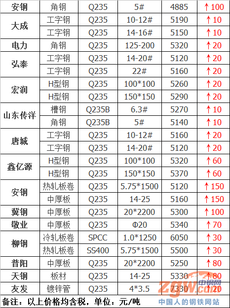 據(jù)數(shù)據(jù)監(jiān)測,今日共29家鋼廠調(diào)價,其中漲幅最高為安鋼板材,調(diào)價幅度150元/噸,具體調(diào)價明細如下: