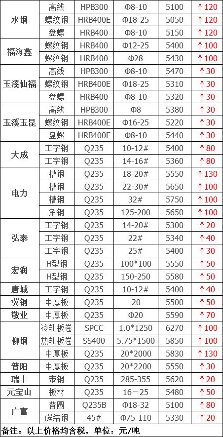 呈鋼貴陽(yáng)建材上調(diào)120元/噸