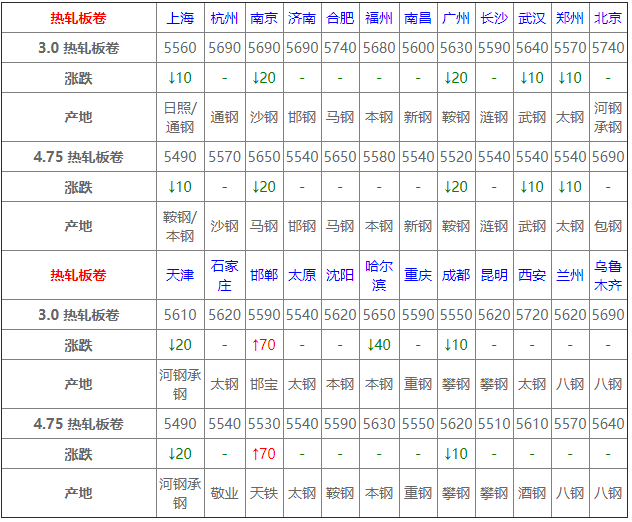 4月15日熱軋板卷價(jià)格:維穩(wěn);