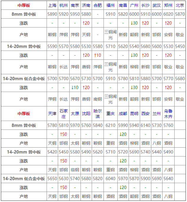 今全國(guó)中板穩(wěn)漲跌均現(xiàn),幅度10-50元/噸,市場(chǎng)成交一般,早盤(pán)期螺震蕩走紅,商家情緒面尚可。