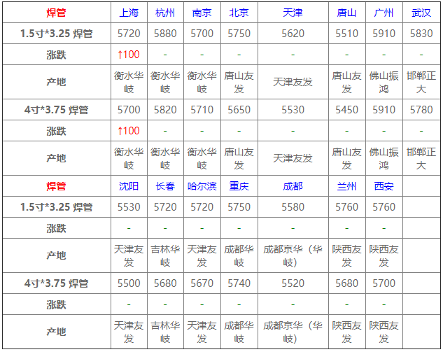 今日開(kāi)市,215日唐山市場(chǎng)焊管價(jià)格窄幅上調(diào),成交尚可。據(jù)富寶鋼鐵網(wǎng)管材研究中心市場(chǎng)監(jiān)測(cè)顯示:成都市場(chǎng)1.5*3.25成都京華焊管價(jià)格為5740元/噸,4*3.75成都京華焊管價(jià)格為5730元/噸,6*4成都京華焊管價(jià)格為5780元/噸。