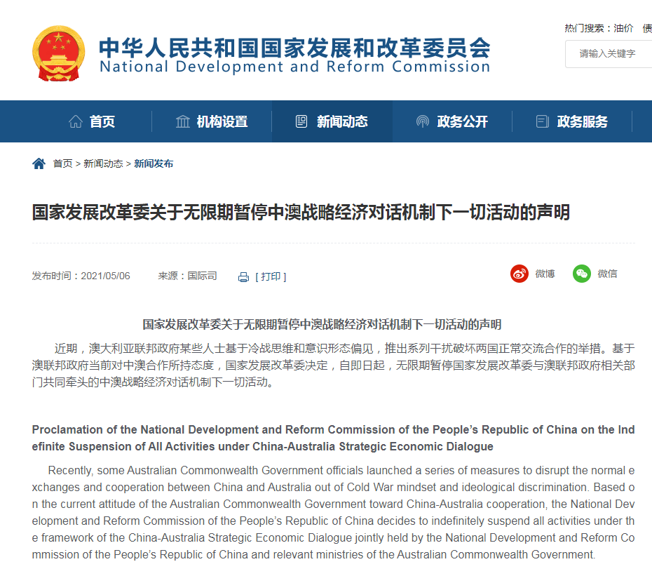 5月鋼價(jià)迎來開門紅!期鋼開盤跳空高開高走,現(xiàn)貨全面上漲。值得關(guān)注的是,國家發(fā)改委發(fā)布“關(guān)于無限期暫停中澳戰(zhàn)略經(jīng)濟(jì)對話機(jī)制下一切活動(dòng)”的聲明,引發(fā)市場關(guān)注。國內(nèi)鐵礦石期貨價(jià)格漲超6%領(lǐng)漲黑色系,鋼價(jià)在一片利好聲中繼續(xù)走高!