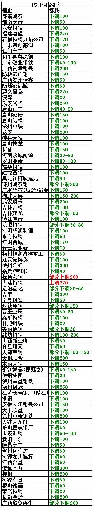 5月15日天津榮鋼部分下調(diào)100-150:鋼坯頭,圓鋼頭,火車輪3750,法蘭片3720,弓子板3710,優(yōu)質(zhì)一級(jí)3750,重a停收,特級(jí)破碎料3650,剪切料3250,鐵銷3230,鋼板料一級(jí)3750,軋廢3820,鋼筋切粒4150,不含稅